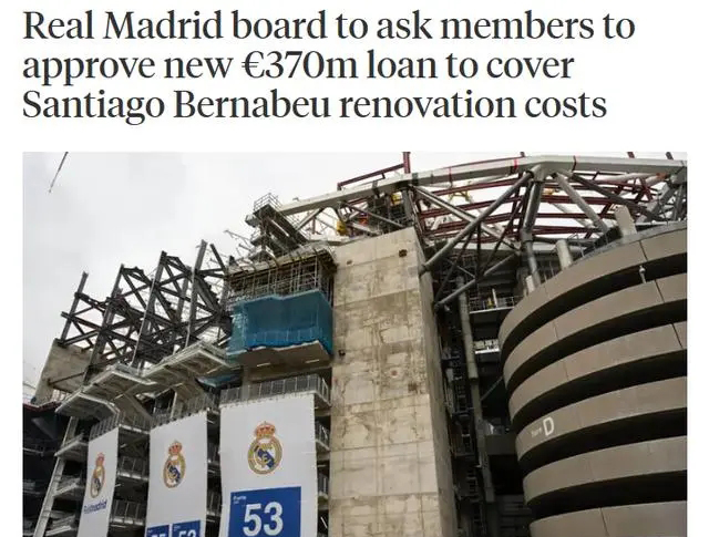 成员们已经两次批准了低息贷款来完成该项目,目前预计总费用将达到14亿欧。皇马将向俱乐部成员申请第三笔3.7亿欧元的贷款,以支付球场翻新的剩余费用。