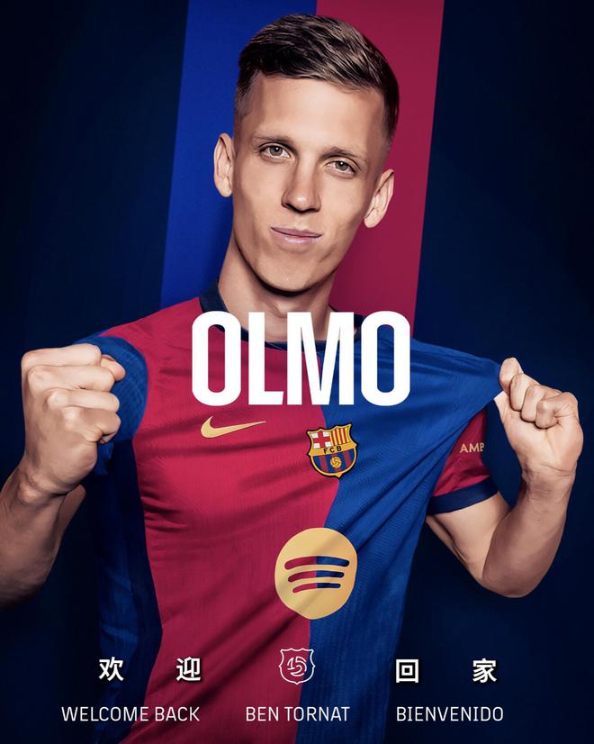 JRS直播网讯 8月9日官方消息,巴塞罗那足球俱乐部成功签下 26 岁的西班牙国脚达尼 - 奥尔莫,转会费总价 6200 万欧,双方签约至 2030 年,解约金 5 亿欧。