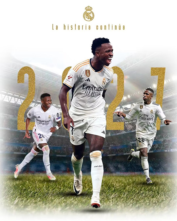 JRS直播网11月01日,西甲豪门皇家马德里俱乐部官方宣布,与队内的巴西天才威尼休斯续约至2027年。而原本威尼休斯与皇马的合同,会在2024年6月到期。续约后,威尼休斯的解约金将会涨至10亿欧元。