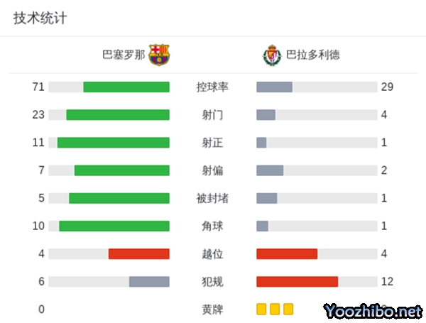 最终,巴萨7-0大胜巴拉多利德。