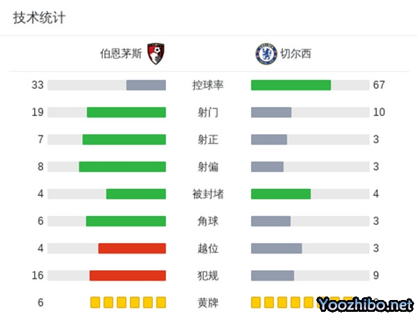 最终切尔西1-0战胜伯恩茅斯。