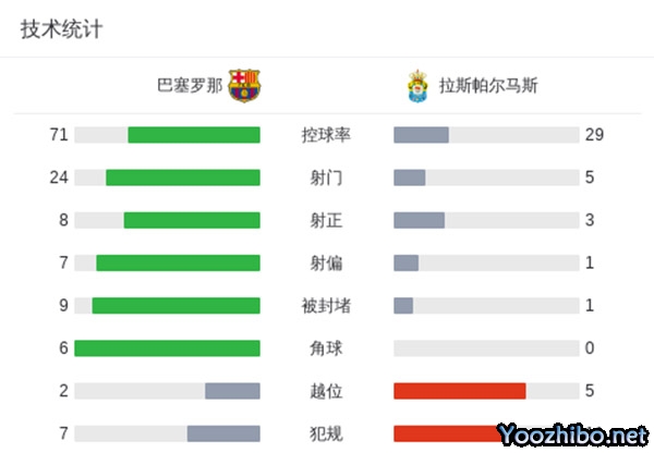 最终,巴塞罗那1-2不敌拉斯帕尔马斯。