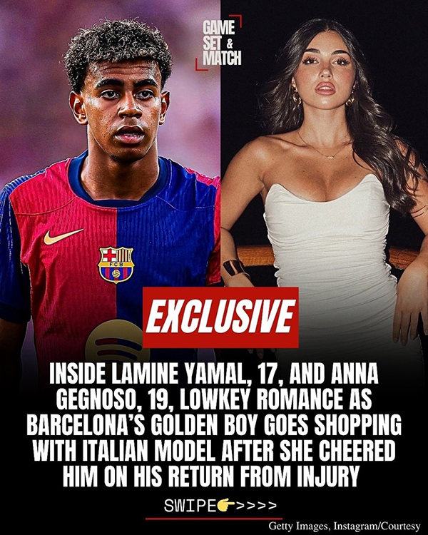 JRS直播网讯北京时间12月2日晚,来自外媒的报道,17岁的巴萨红星亚马尔又有了新的对象,他的新女友是19岁的意大利模特Anna Gegnoso。