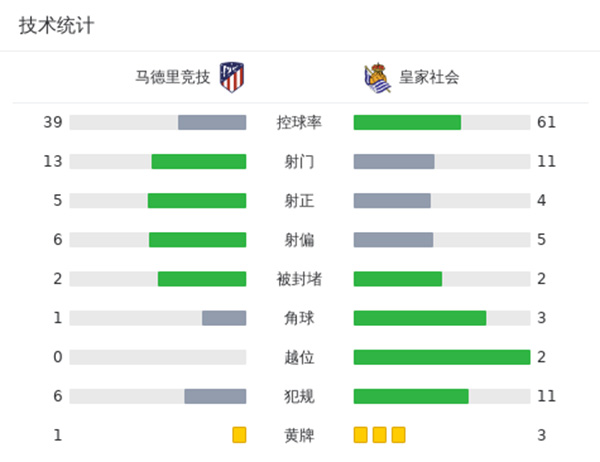关键事件: 第22分钟,马竞后场长传,利诺插上单刀突入禁区,左脚打门得手!马德里竞技1-0皇家社会!