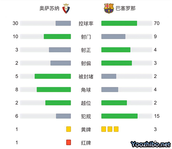 关键事件: 第46分钟,巴萨打破僵局!右路角球开到禁区孔德高高跃起头球破门,随后裁判经过var提示确认进球有效,奥萨苏纳0-1巴萨。