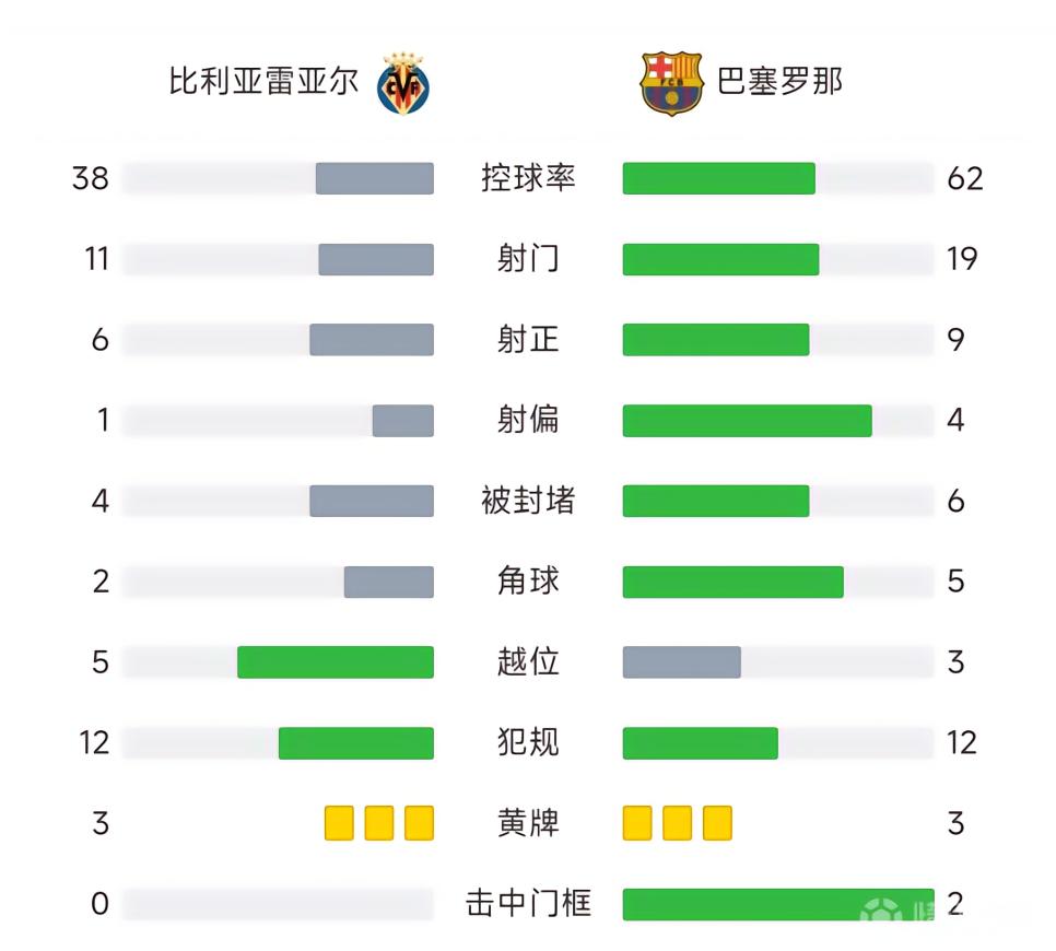 全场比赛结束,巴塞罗那4-3比利亚雷亚尔。