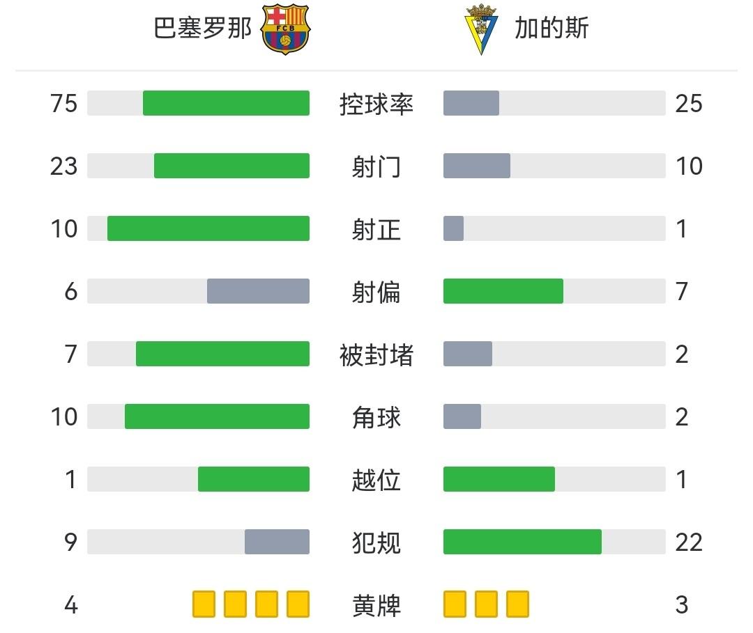 巴萨2-0加的斯 佩德里费兰破门16岁亚马尔先发出战85分钟