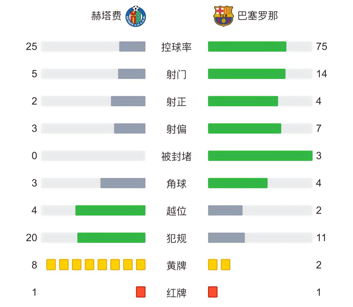 巴萨0-0赫塔费 哈维染红拉菲尼亚肘击直红