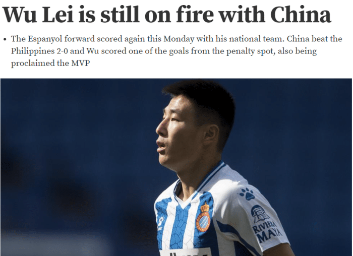 世体今日以《武磊在中国队状态火热》为标题点评了这位西班牙人前锋最近的表现,这家西班牙媒体写道:“武磊继续保持着自己在国家队的火热状态,他在中国对阵菲律宾的世预赛中打进一记点球,帮助中国2-0击败对手,赛后被评为全场最佳。”