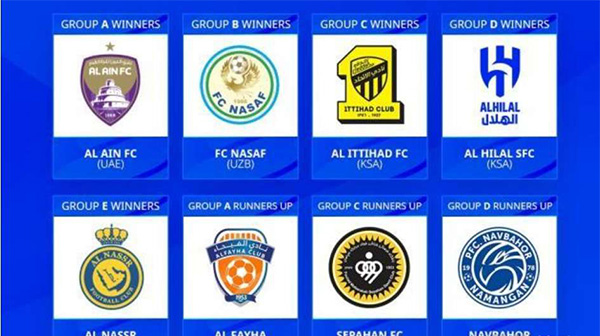第一小组的第一名阿联酋艾因队、第二小组的第一名乌兹别克斯坦纳萨夫、第三小组的第一名沙特吉达国民、第四小组的第一名沙特利雅得新月、第五小组的第一名沙特利雅得胜利,以及三个小组第二名即沙特的费哈(第一小组)、伊朗的塞帕汗(第三小组)以及乌兹别克斯坦的纳夫巴霍夫(第四小组)。