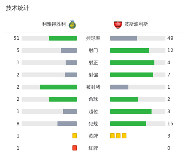 关键事件: 第17分钟,利雅得胜利少打一人!波斯波利斯反击机会萨尔拉克中路斜传伊斯梅利法禁区推射被门将出击破坏,随后回放显示萨尔拉克传球时被奥贾米踩到脚踝,裁判马宁经过回放后出示直红将其罚下。