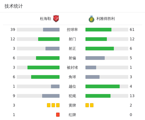 关键事件: 第8分钟,杜海勒先下一城!左路奥伦加下底横传门前库蒂尼奥推射破门,杜海勒1-0利雅得胜利。