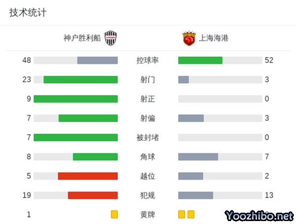 第54分钟,汰木康也左路传中被解围,本多勇喜顺势传到禁区右侧,锹先祐弥跟进爆射破门!上海海港0-2神户胜利船。