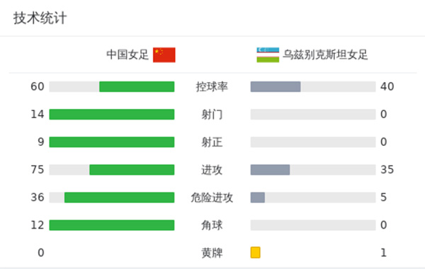 中国7-0乌兹别克斯坦 中国女足4胜1负收官