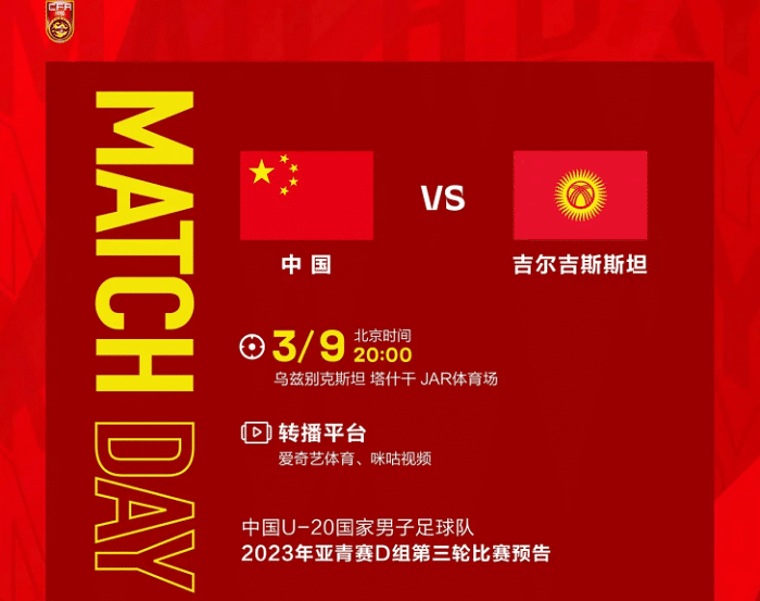 JRS直播网讯03月09日,U20亚洲杯小组赛进入到最后一个比赛日,只剩下中国队所在的D组还没有尘埃落定。本轮U20国足迎战垫底的吉尔吉斯斯坦,小组第一的日本队迎战第三的沙特队。对于中国队来说,赢球就可以直接晋级八强。该小组的第一名将会在1/4决赛对阵约旦,小组第二与韩国队争夺四强名额。
