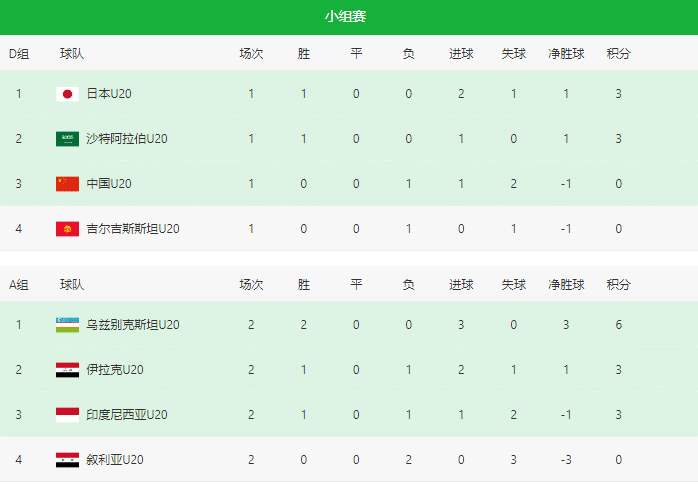 JRS直播网讯03月06日,U20亚洲杯小组赛继续进行,中国队所在的D组将迎来第二轮的对决,日本队VS吉尔吉斯斯坦,中国队大战沙特,目前日本和沙特在首轮获得胜利,分别排名第一和第二,中国队首战1-2被日本逆转,目前排名第三,吉尔吉斯斯坦队目前垫底。