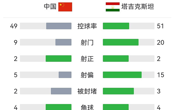 最终中国男足遭压制0-0战平塔吉克斯坦。