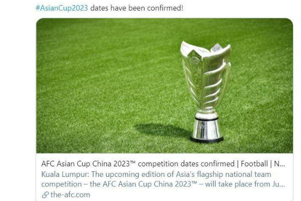 亚足联及亚洲杯中国组委会今日公布2023中国亚洲杯举办时间,2023年亚足联中国亚洲杯将于2023年6月16日至7月16日在北京、天津、上海、重庆、成都、西安、大连、青岛、厦门和苏州等10座城市举行。