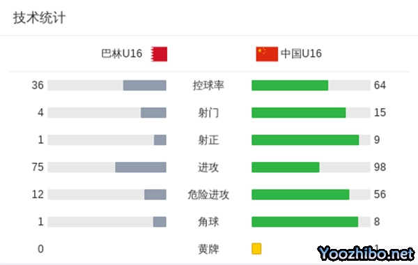 全场结束,中国U16以2-0战胜巴林U16,取得开门红。