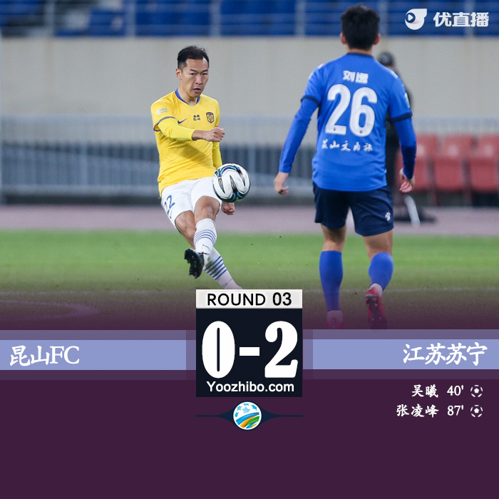 JRS直播网讯:北京时间12月1日晚上20:00,2020赛季中国足协杯1/4决赛,昆山FC对阵江苏苏宁。上半场比赛吉翔伤退,吴曦劲射率先破门,下半场昆山FC机会不断可惜没有把握,比赛尾声替补出场的张凌峰破门锁定胜局,最终苏宁2-0战胜昆山FC晋级四强,下轮对阵天津泰达。