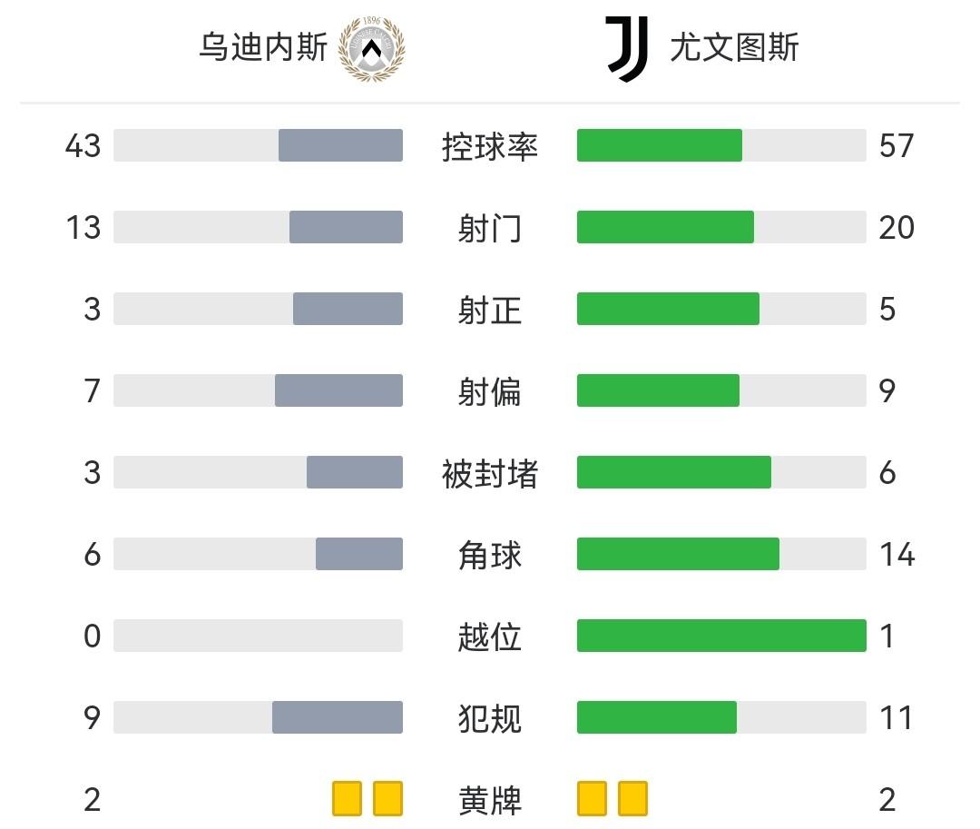 全场比赛结束,最终尤文图斯1-0乌迪内斯。