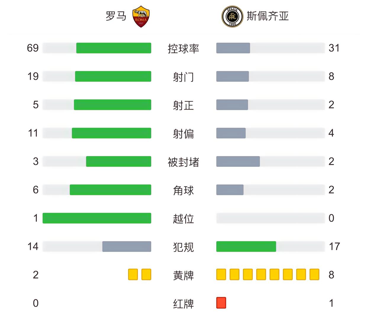 关键事件: 第6分钟,斯佩齐亚挑传到禁区右侧,罗马球员头球解围没顶远,博拉比亚将球扫向后点,尼科拉乌近距离头球攻门顶进,斯佩齐亚1-0领先!