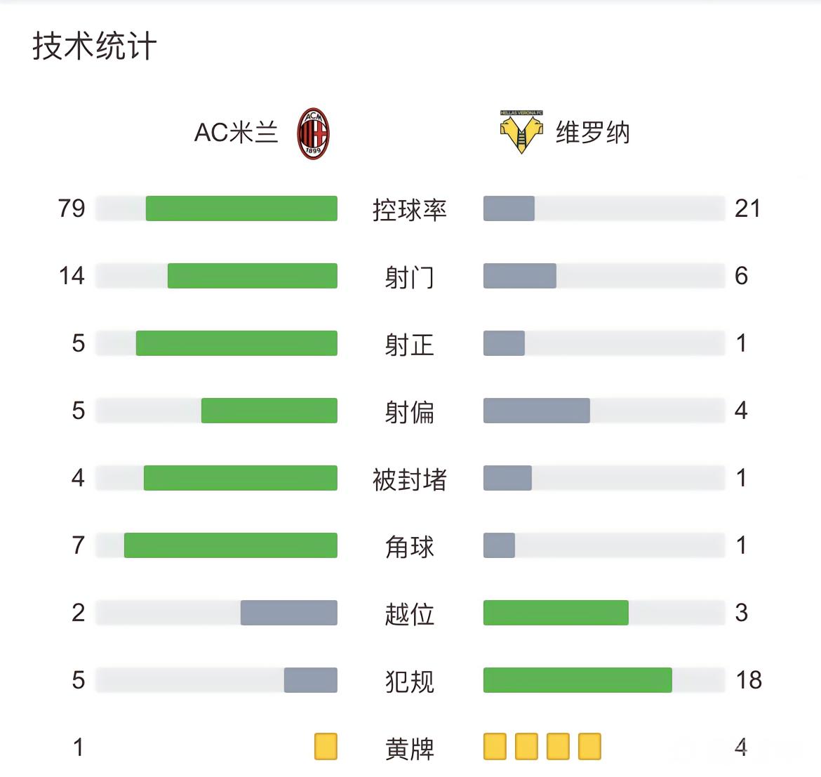 全场比赛结束,最终AC米兰3-1维罗纳。