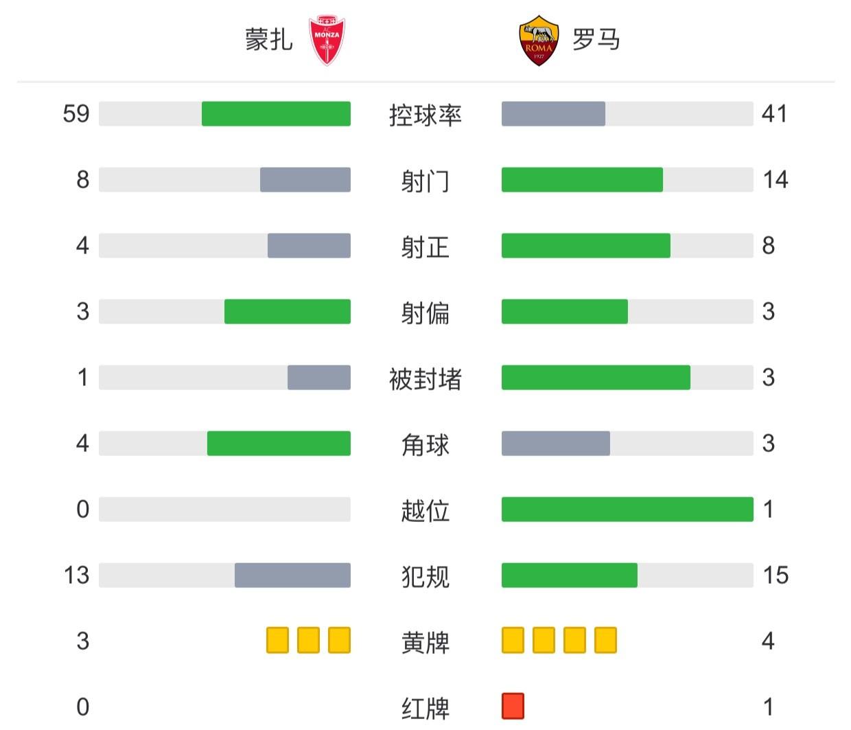 关键事件: 第24分钟,罗马打开记录!迪格雷戈里奥开门球被亚伯拉罕抢断,随后沙拉维推射被门线解围,紧接着补射球进,蒙扎0-1罗马。