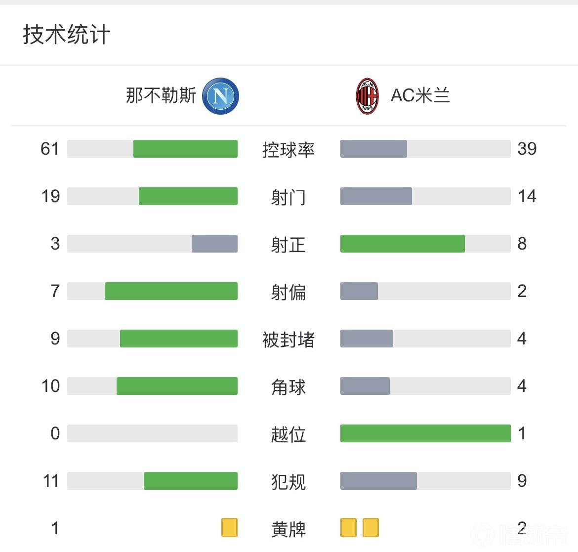 查看:那不勒斯vsAC米兰 全场录像技术统计: