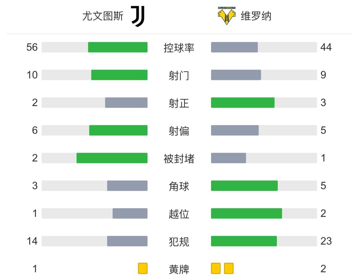 最终全场比赛结束,尤文主场1-0维罗纳。