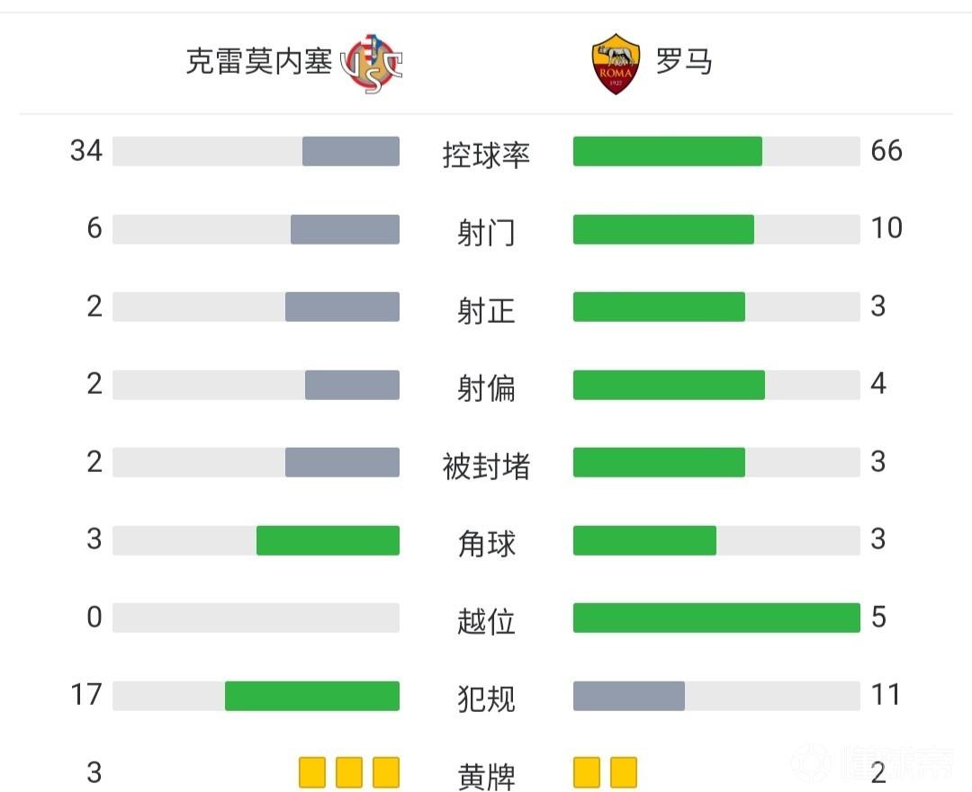 全场比赛结束,罗马1-2克雷莫纳。克雷莫纳收获本赛季意甲首胜。
