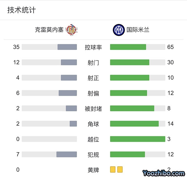 全场比赛结束,最终国米客场2-1逆转克雷莫纳,暂升至积分榜第二。