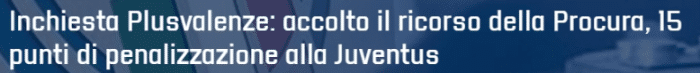 JRS直播网01月21日讯 ,意大利足协官方宣布,尤文图斯因财务造假被扣除15个联赛积分。