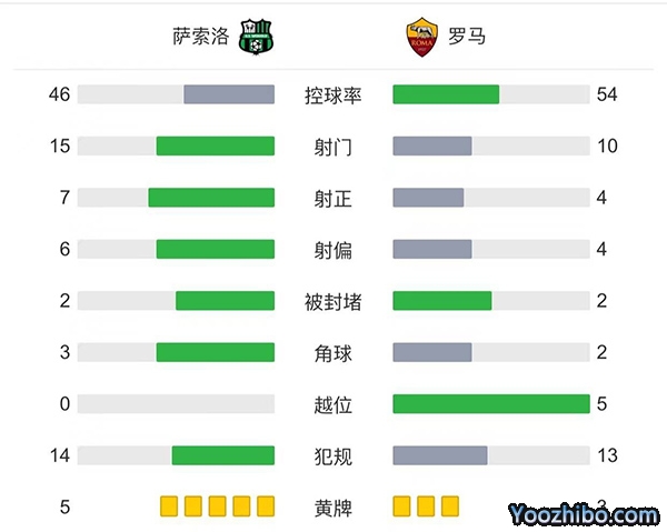 全场比赛结束,最终罗马客场1-1客平萨索洛。