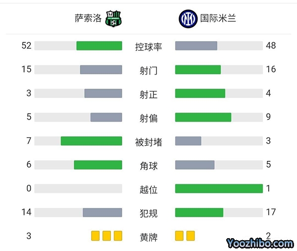 全场结束,国际米兰2-1萨索洛。