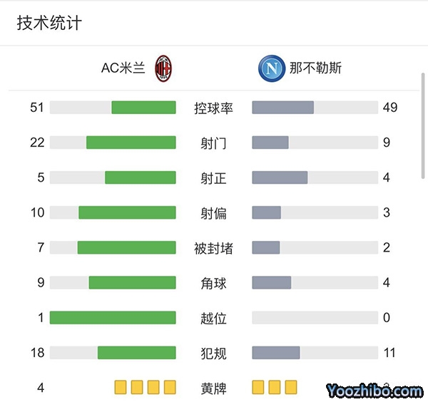 全场比赛结束,AC米兰主场1-2负于那不勒斯。