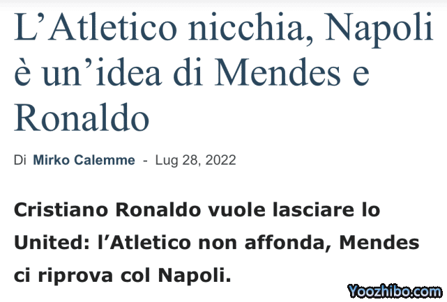 JRS直播网07月29日讯 ,来自那不勒斯当地记者Mirko Calemme的报道,在前往拜仁、切尔西、马竞的希望逐渐变小之后,葡萄牙巨星C罗已经把那不勒斯,视为自己最新的首选下家。