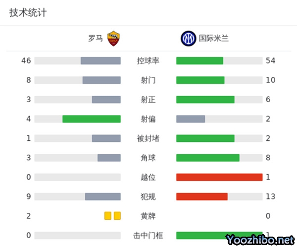 关键事件: 第19分钟,迪马尔科主罚角球开出,卢卡库头球乌龙助攻,阿切尔比顺势头球吊射入网。通过VAR,裁判吹罚进球有效,罗马0-1国际米兰!
