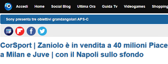 JRS直播网06月03日讯 据《米兰新闻网》报道,AC米兰有意签下扎尼奥洛,罗马方面为球员标价4000万欧元。