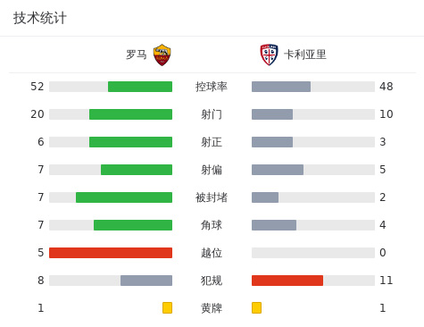 罗马4-0卡利亚里 穆帅下课后红狼联赛3连胜