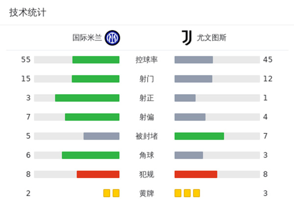 JRS直播网讯 :北京时间2月5日意甲联赛第23轮,国际米兰主场对阵尤文图斯。上半场,巴雷拉传中,加蒂在图拉姆的压迫下自摆乌龙。下半场,恰尔汗奥卢的弹射击中立柱弹出,斑马军团整场比赛仅1射正。全场比赛结束,国米1-0战胜尤文,在少赛一场的情况下领先对手4分。