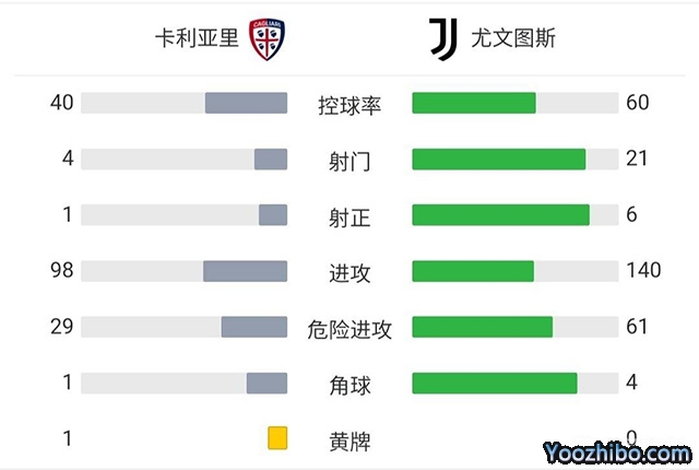 第10分钟,卡利亚里进球!迪巴拉中场拿球被断,马林右路拿球向前带后给到禁区中路,若昂-佩德罗顺势停球打门球进,卡利亚里1-0尤文。