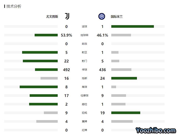 全场比赛结束,尤文图斯0-1国际米兰。