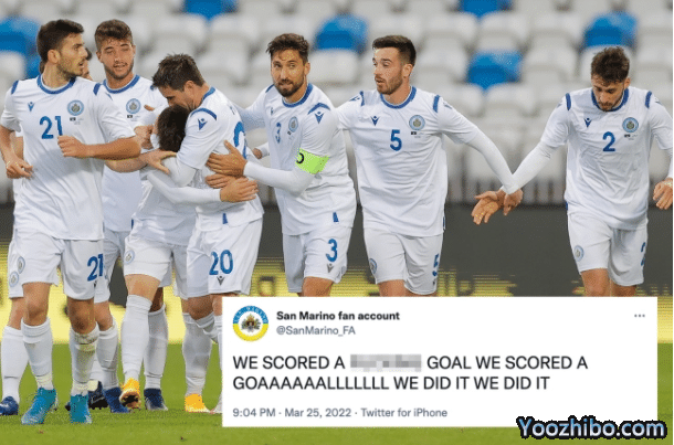 一个圣马力诺球迷账号写道:“我们他x的进球了,我们进球了,我们做到了!法布里,让我亲吻你的嘴唇吧,你真他x是个传奇。”
