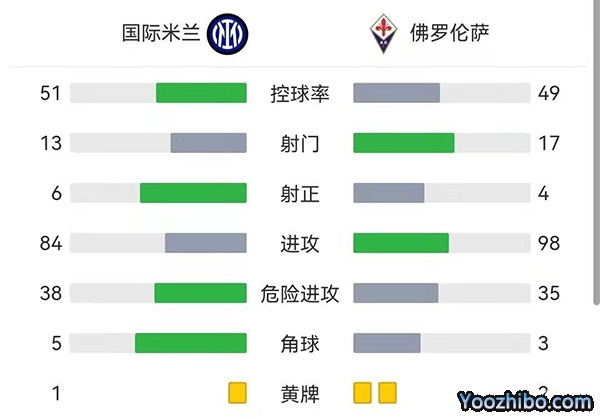 全场比赛结束,国米主场1-1战平佛罗伦萨。