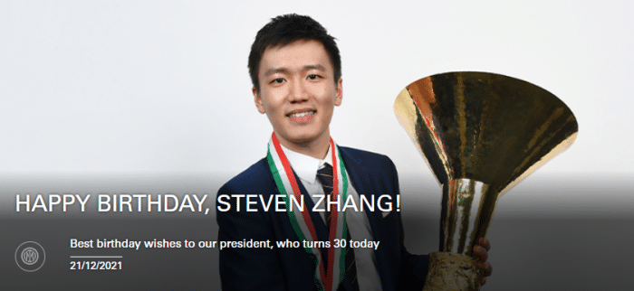 JRS直播网12月21日讯 国米官网写道,张康阳今天庆祝了30岁生日,这是他在国米的第四个生日,今年他成为意甲历史上最年轻的联赛冠军主席,这也是国米的第19个联赛冠军。