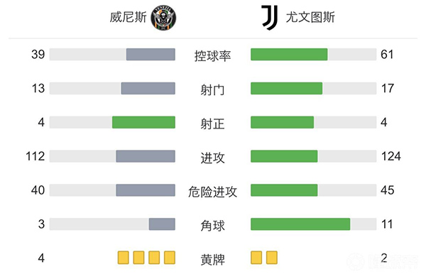 全场比赛结束,尤文图斯客场1-1战平威尼斯。