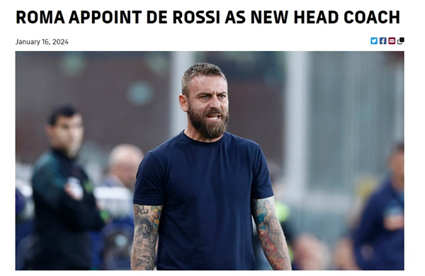 JRS直播网01月17日讯 ,意甲罗马俱乐部官方宣布,40岁的俱乐部名宿德罗西,将会接替穆里尼奥出任球队的新主帅。德罗西的任期至2024年6月30日,他将会带队踢完本赛季剩余比赛。