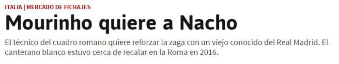 JRS直播网讯 据西班牙媒体《阿斯报》援引意大利媒体《米兰体育报》报道,穆里尼奥给罗马列出的冬窗引援名单上,纳乔的名字排在前列。