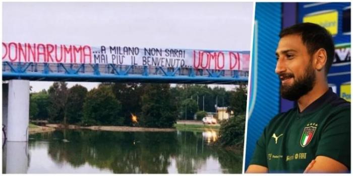 最近在接受媒体采访时,多纳鲁马表示他希望在接下来的欧国联比赛中回米兰时不会被嘘,对此米兰球迷已经作出了回应,他们拉出了一张横幅,上面写道:“多纳鲁马,你就是一坨屎,米兰永远不会再欢迎你。”